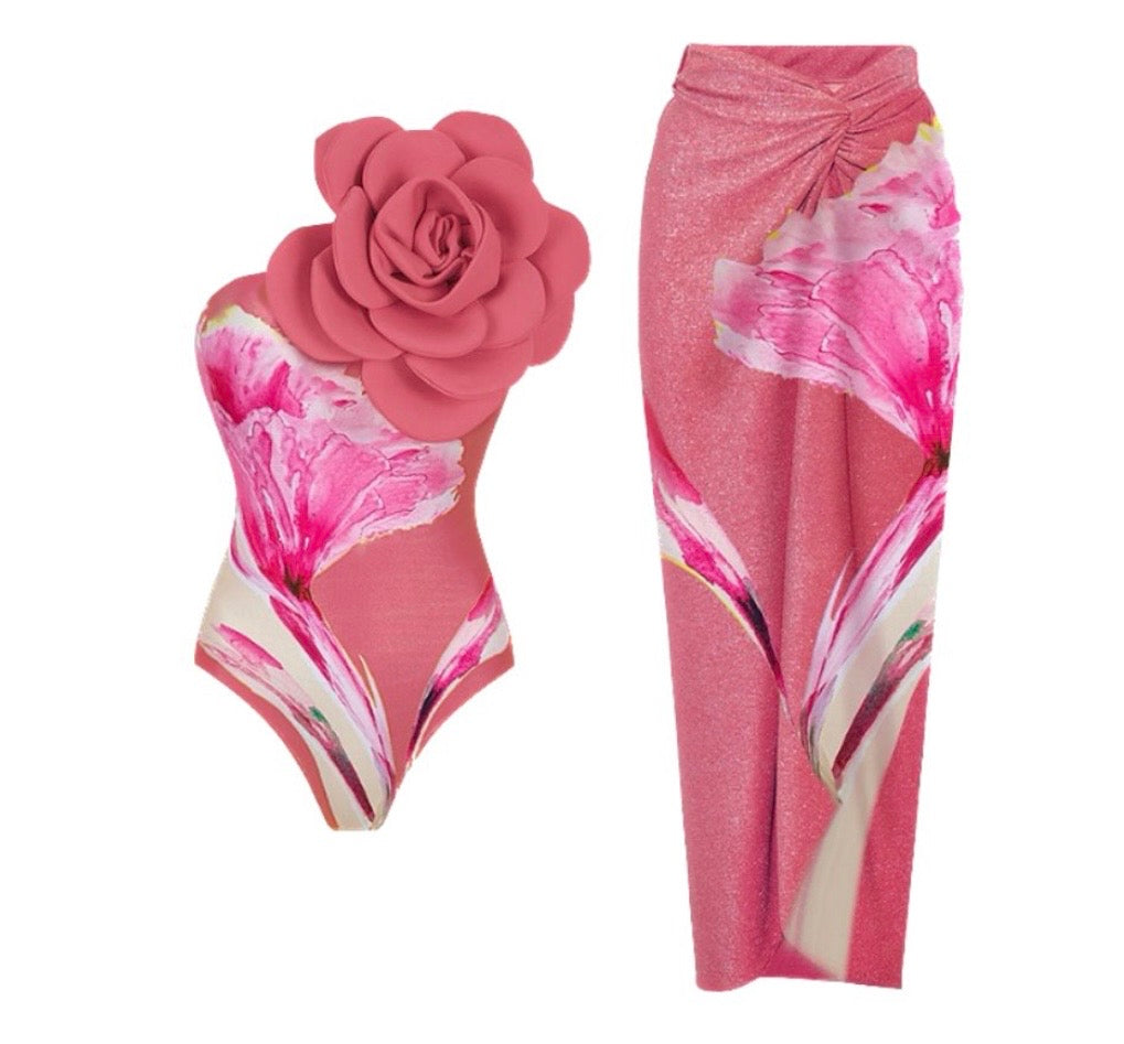 - One piece swimsuit and a Sarong skirt